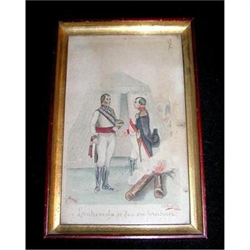 Painting ?Entrevista de 2 Emperadores JS Gordillo 1900. Painted with watercolor, in good conditions as you can see.
