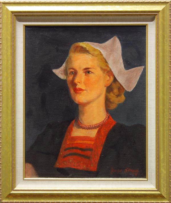 Framed oil on canvas, Portrait of Woman, 1954, by George Straub (American, 20th Century), signed and dated ''George Straub, '54'' lower right, overall: 26''h x 22.25''w