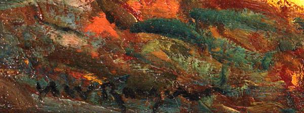 Framed oil on canvas, Autumn Afternoon, by Henry Ward Ranger (American, 1858-1916), signed ''H. W. Ranger'' lower left, canvas: 17.75''h x 25.5''w, overall: 30.75''h x 38.75''w. Provenance: Estate of Mr. and Mrs. Ben H. Eaton, San Francisco, California