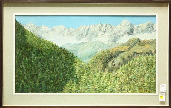 Framed oil on board, Mountain Landscape, 20th century, signed ''P. Lana'' lower right, overall: 24''h x 38''w