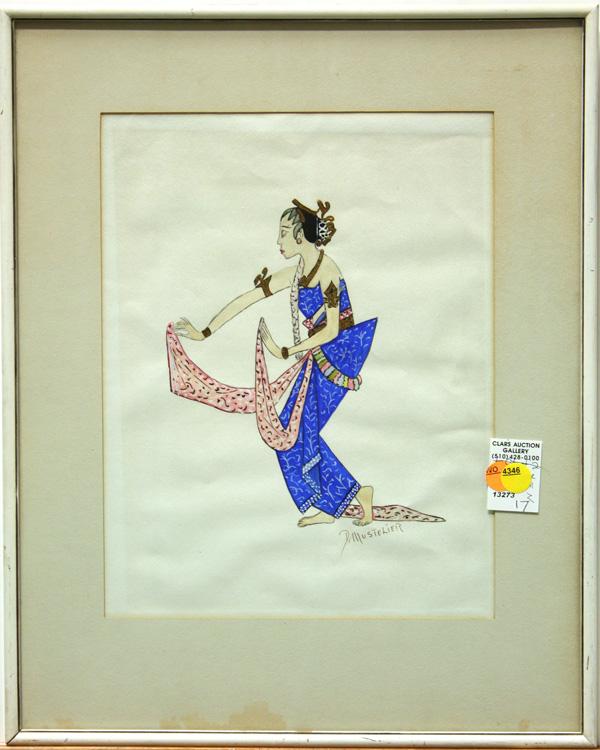 Framed gouache on paper, Dancer, 20th century, signed ''D. Mustelier'' lower right, overall: 18''h x 14.5''w