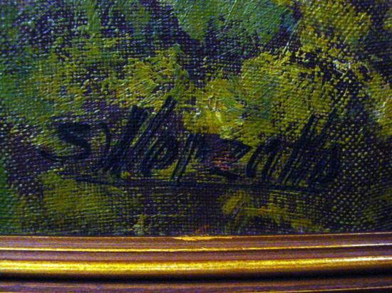 Painting, Oil on canvas "Greek village in the 1950's". H: 30.5" W: 42.5" with frame. The scene for this painting is a village from Greece with mountains on the back. On the bottom right, you can see the signature of artist (see photo #4). A small price for a very nice piece of art! Perfect condition !!! For the shipping...don't worry, we ship from Texas (not from France)!