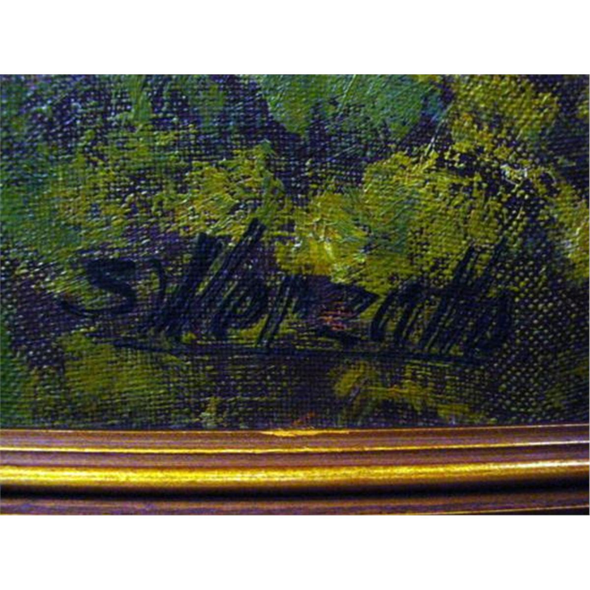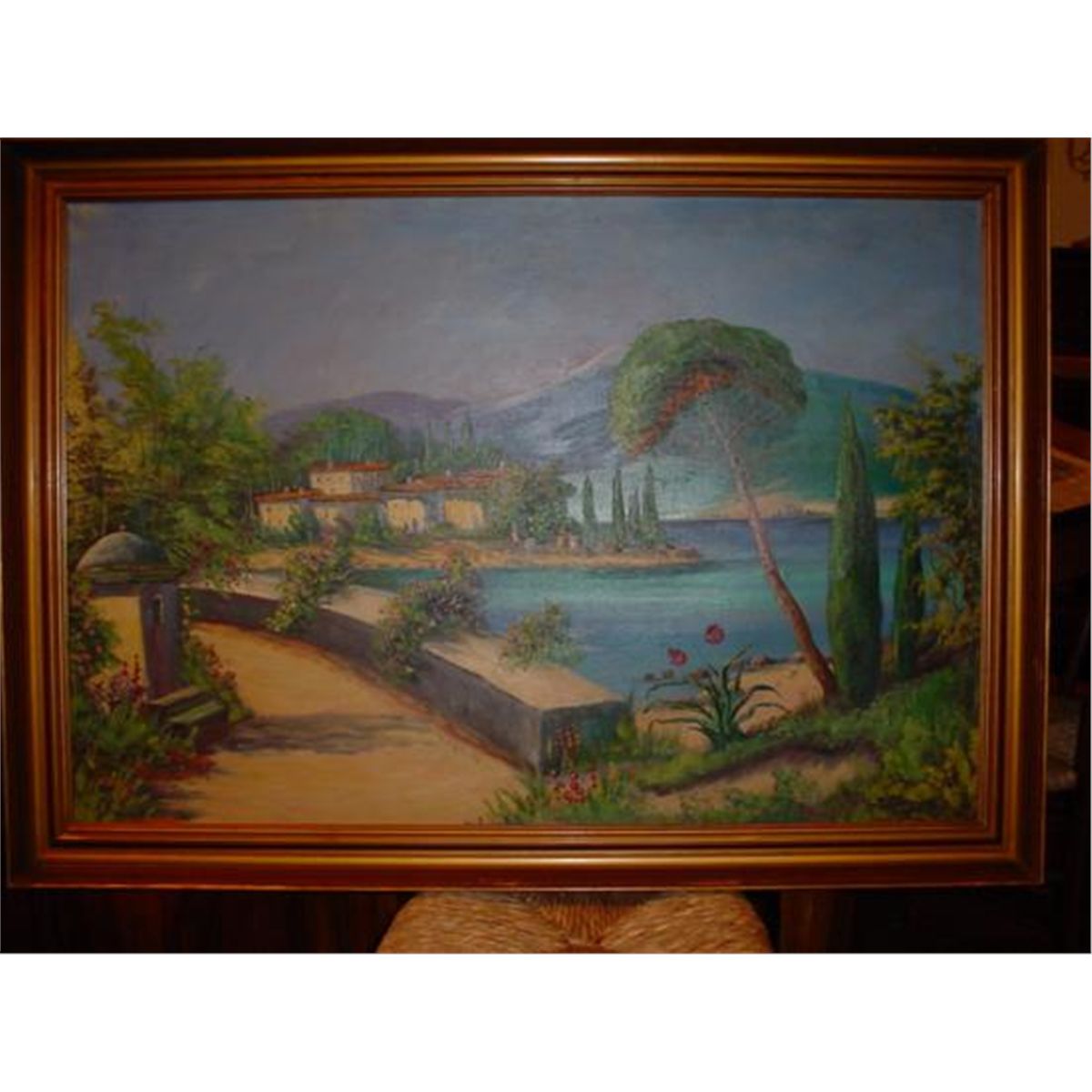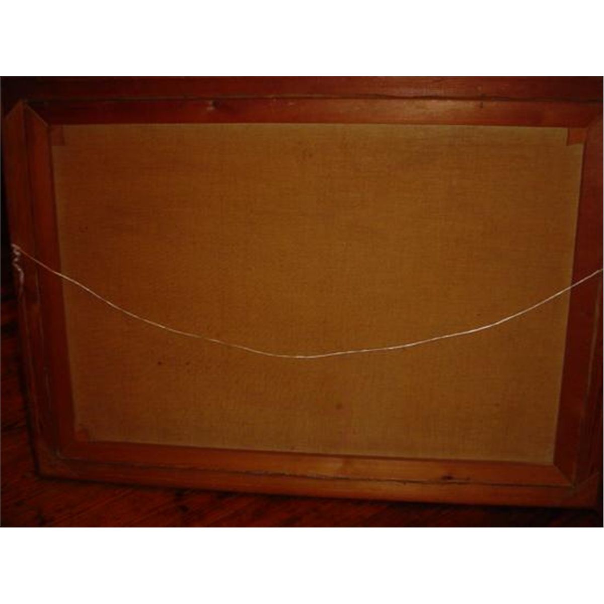 Painting, Oil on canvas "Greek village in the 1950's". H: 30.5" W: 42.5" with frame. The scene for this painting is a village from Greece with mountains on the back. On the bottom right, you can see the signature of artist (see photo #4). A small price for a very nice piece of art! Perfect condition !!! For the shipping...don't worry, we ship from Texas (not from France)!