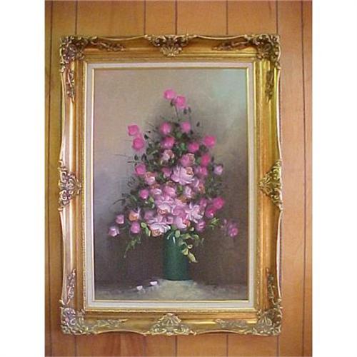 <tr><td>Title:Painting Pink Roses oil on canvas signed </td></tr>