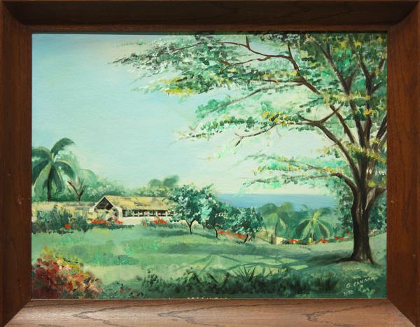 Framed oil on board, Tropical Landscape, 1958, signed ''G. Canaan 3/58'' lower right, overall: 21.5''h x 27.5''