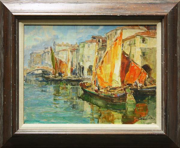 Framed oil on canvas, Venetian Canal Scene, 20th century, signed indistinctly ''Harombo'' lower right, overall: 17.5''h x 21.5''w