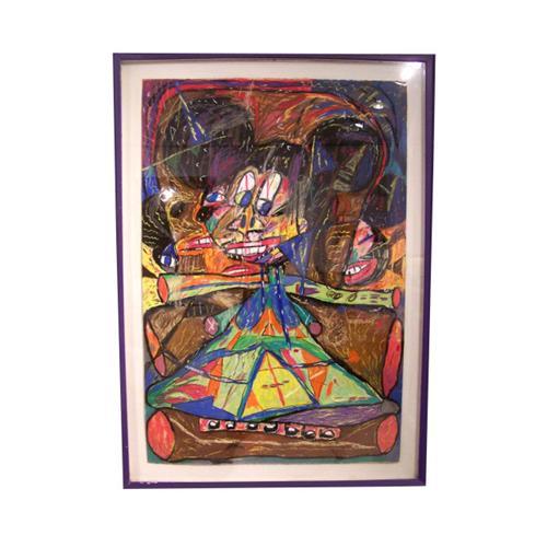 Description: Painting by Michael Changnon. Pastel on paper, signed MC 1988 lower right. Colorful abstract Minnie Mouse.