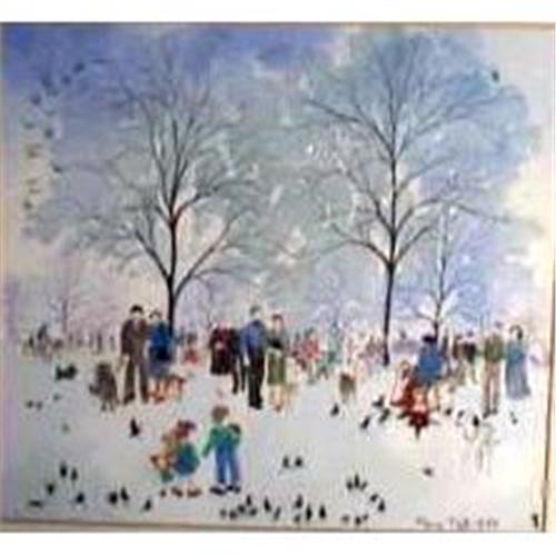 Watercolour by artist "Mary Taft" English Artist. This painting is one of six. Children walking through the square in Sussex England. The painting is mounted & framed by the artist.