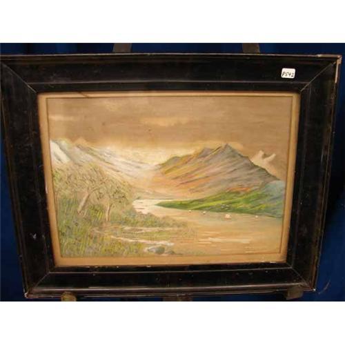 Painting lake/mountain scene, Late 19th Century, unsigned, (14.5" x 11")