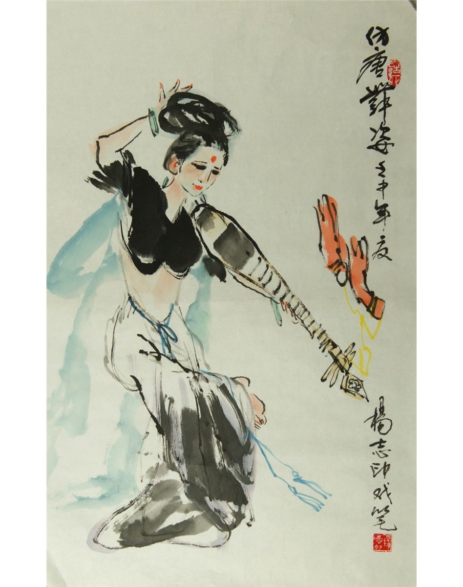 Dancing lady, hanging scroll, Chinese ink and watercolour on paper, signed Yang Zhiyin (1934-) with two red seals. 47 cm x 70 cm. Provenance: T. Ng Collection Toronto.