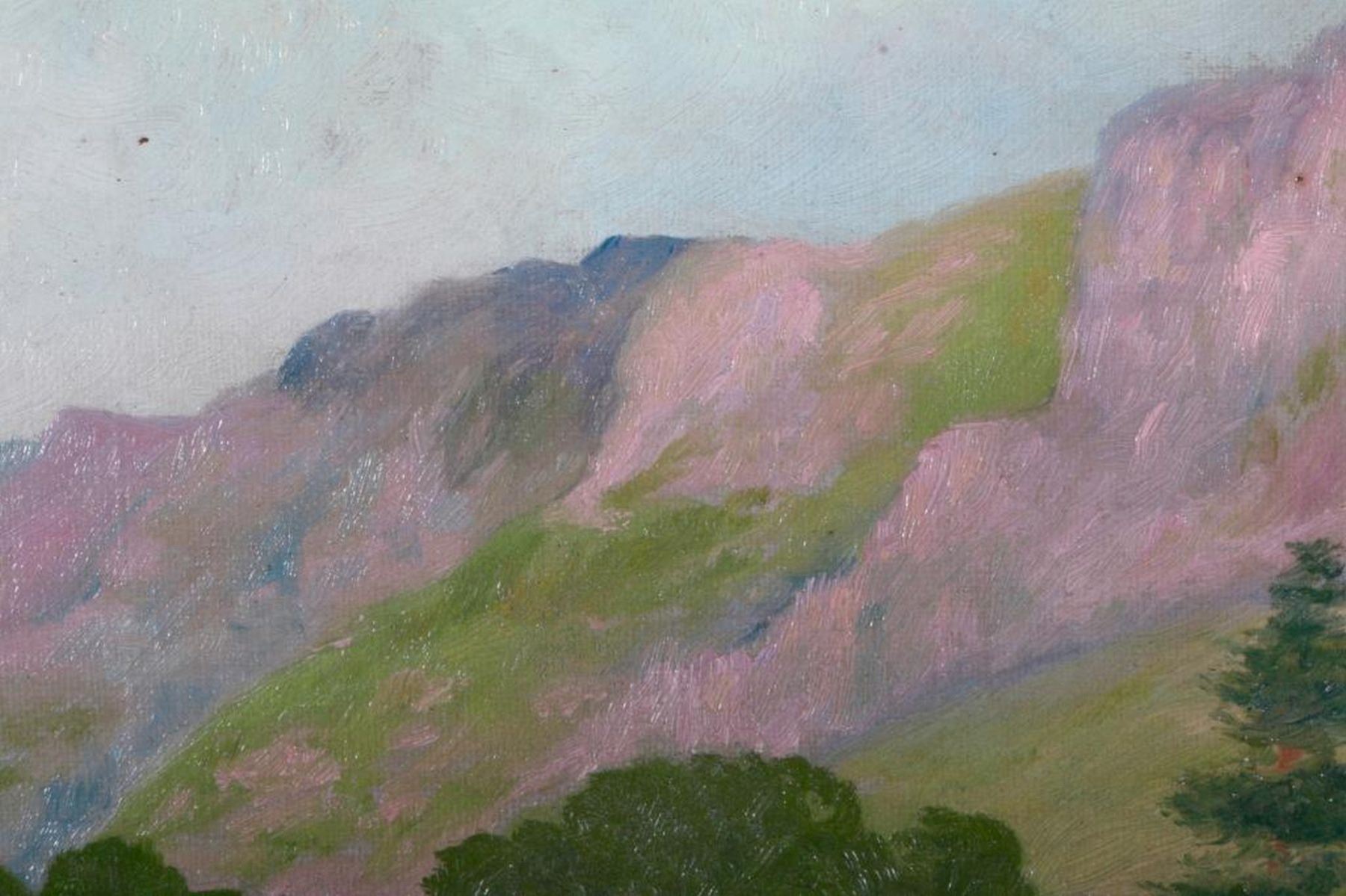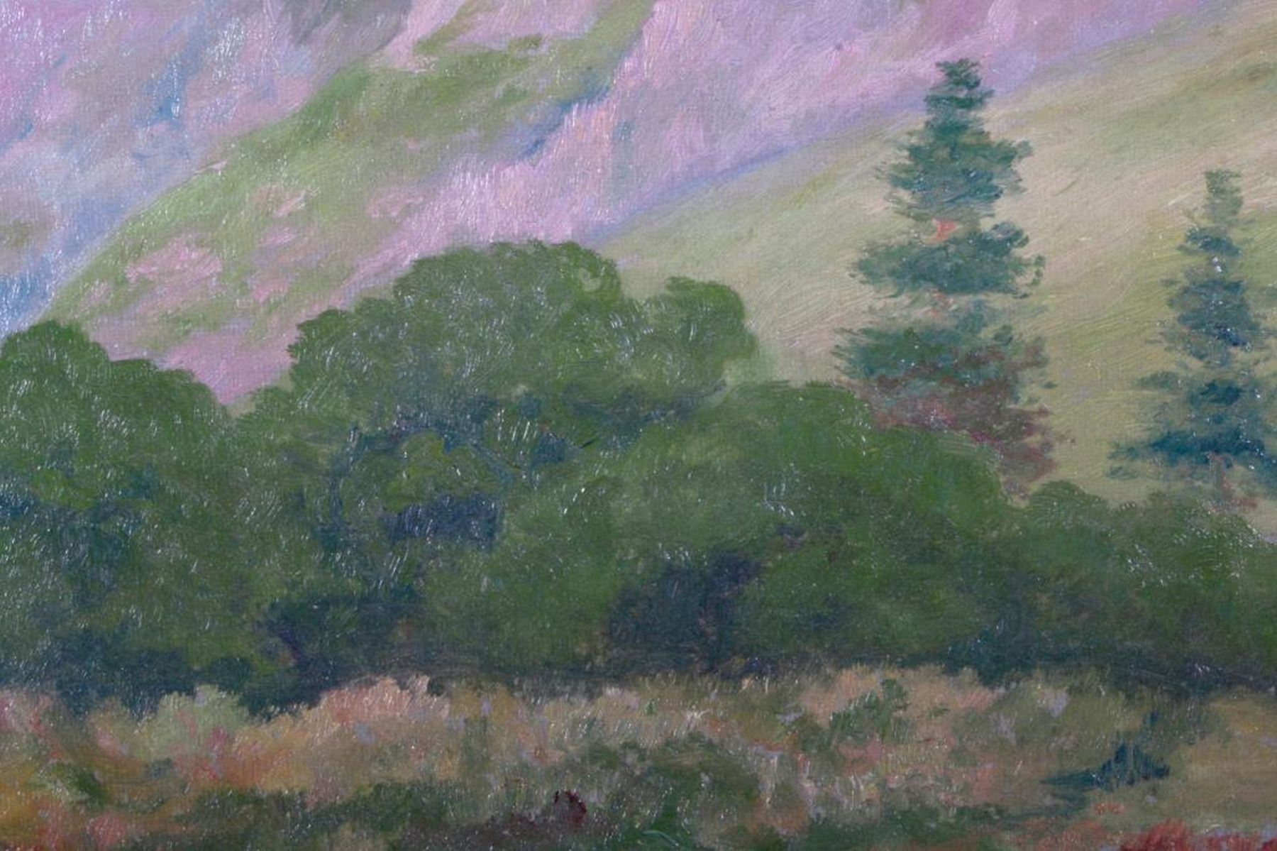 Artist: Signature illegible: Title/Subject: Mt. Whitney. Medium: Oil on board. Date Created: 1904. Size Image: 8 1/2 inches high x 11. Size Frame: 13 1/2 inches high x 16 1/2. Condition: Good. Some loss to frame.
