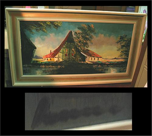 Painting of a Cottage. Measures 37" x 21 3/4" in frame