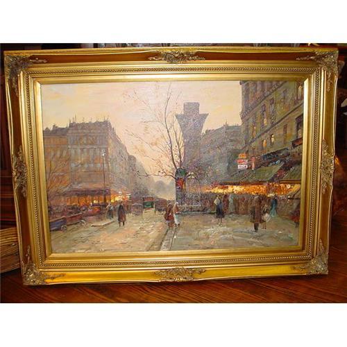 Wonderful and large Painting. H: 24" W: 36" (sizes without the frame)/ H: 32.5" W: 44.5" (sizes with the frame). The scene for this painting is a Boulevard in Paris...Rue Saint Denis, Paris in the 1890's. On the back, you can see a stamp. A small price for a very nice piece of art! Perfect condition (painting and frame) !!! For the shipping...don't worry, we ship from Texas (not from France)!