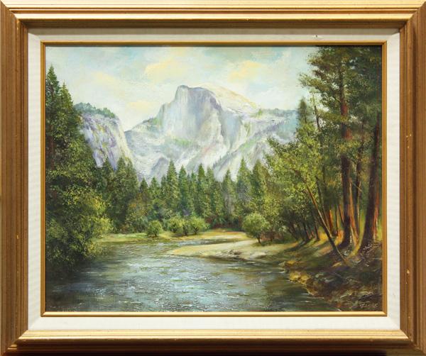 (Lot of 2) Framed oils on canvas, Mountain and Lake Landscapes, 20th century, one signed ''T Clark'' lower right, largest overall: 21''h x 25''w