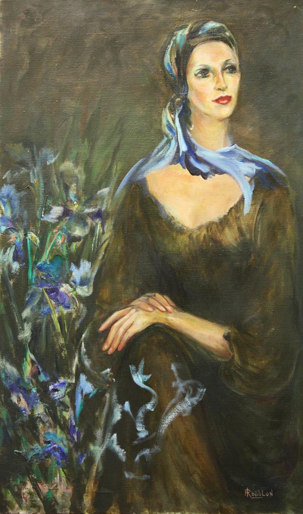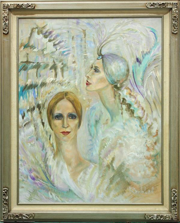 (Lot of 2) Framed oils on canvas, Swan Lake and Seated Woman, American School, 20th Century, both signed ''Roublon'' lower right, largest overall: 47.25''h x 37.5''w