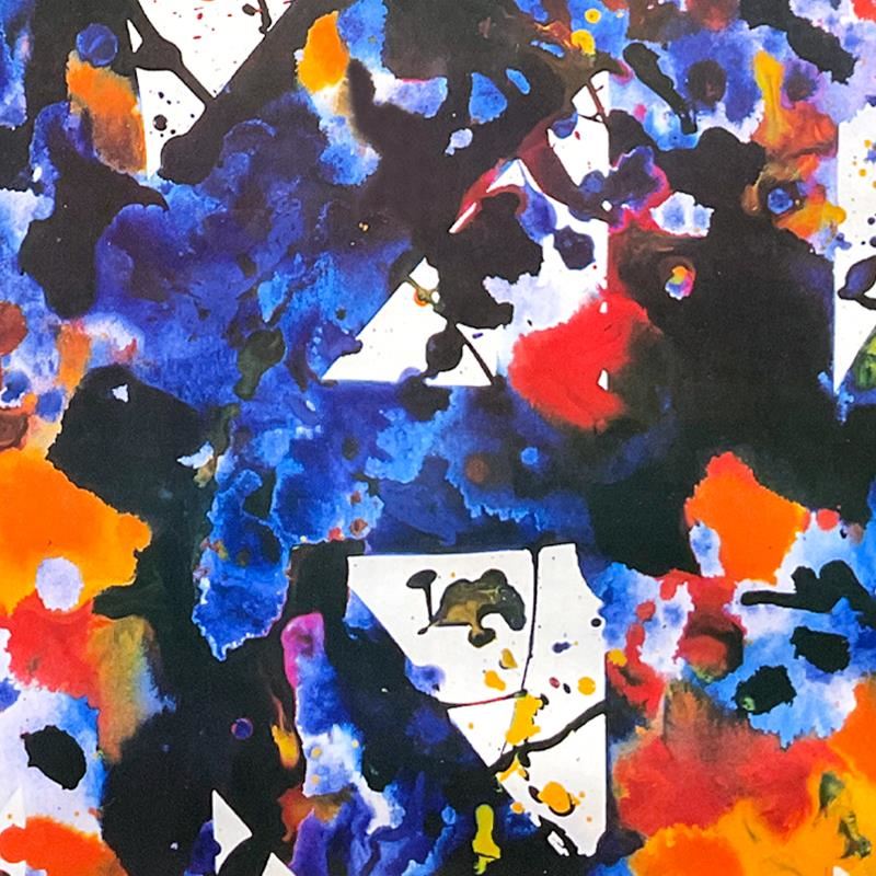 "Paintings and Drawings" is a vintage offset lithograph by Sam Francis (1923-1994) cropped from the Ace Gallery 1979 poster. This piece comes custom framed and includes Letter of Authenticity. Measures approx. 35" x 42.5" (frame), 28" x 36" (image). Due to the age of this piece there may be some very minor waviness on the paper, but it is in overall excellent condition.
