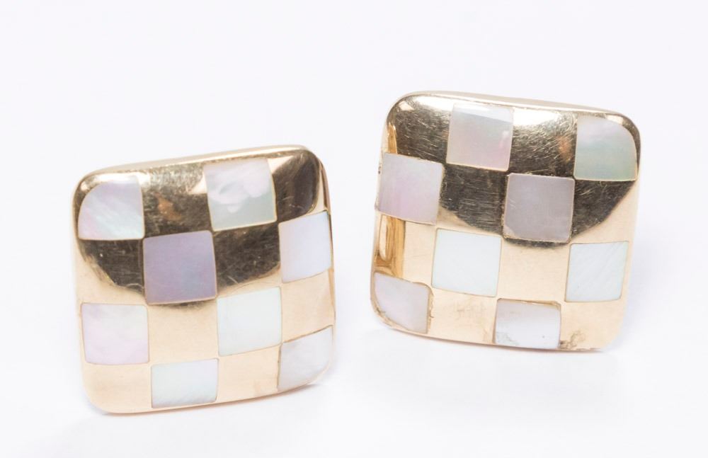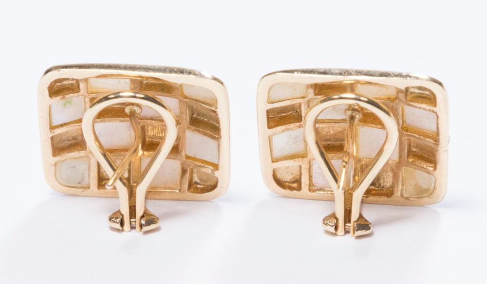 Pair 14K Yellow Gold & Mother of Pearl Earrings