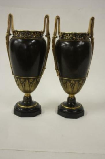 Pair 19th Century Mixed Metal Urns, Approximately H16"