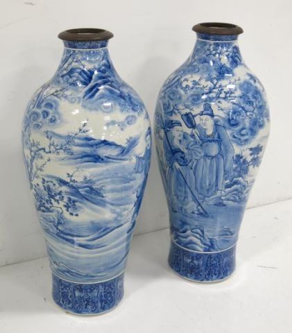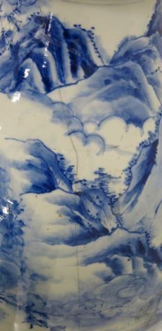 Depicting "Mountains & Walking Wise Men", wood ring on each top. Approx. 41" H. Crack in one.