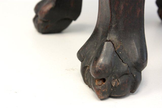 Teakwood, claw foot & "Leaf" design. Approx. 10" H x 8" across. Please read our terms of sale.