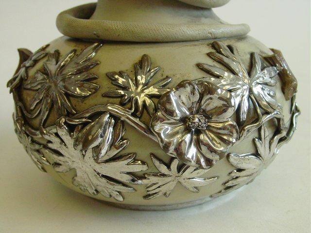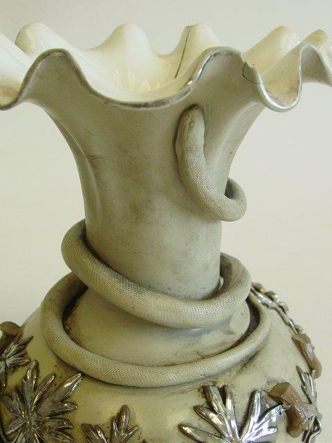 With silver adorned floral design & snakes wrapped around the neck. As is. Approx. 8" H
