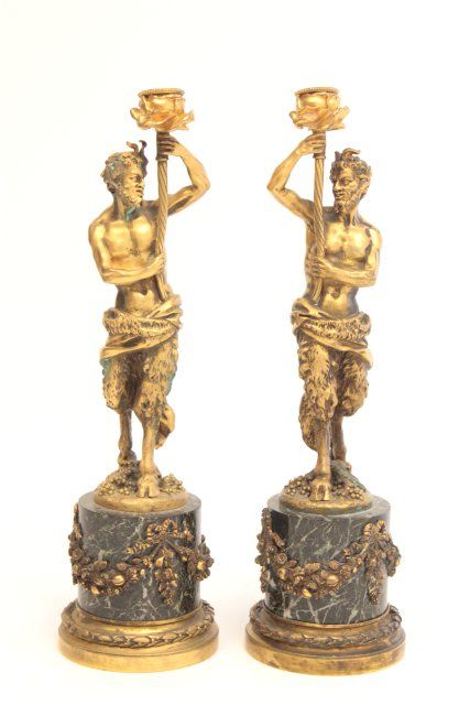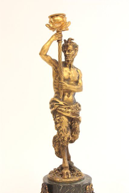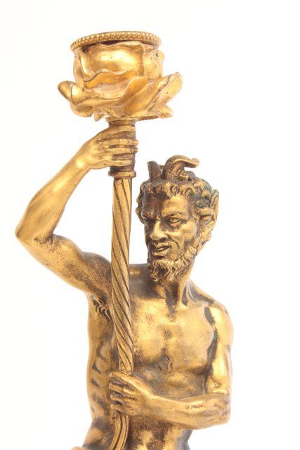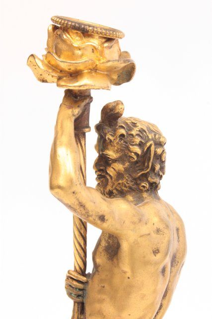 Depicting "Satyr's Holding Tops". Approx. 16" H Please read our terms of sale.