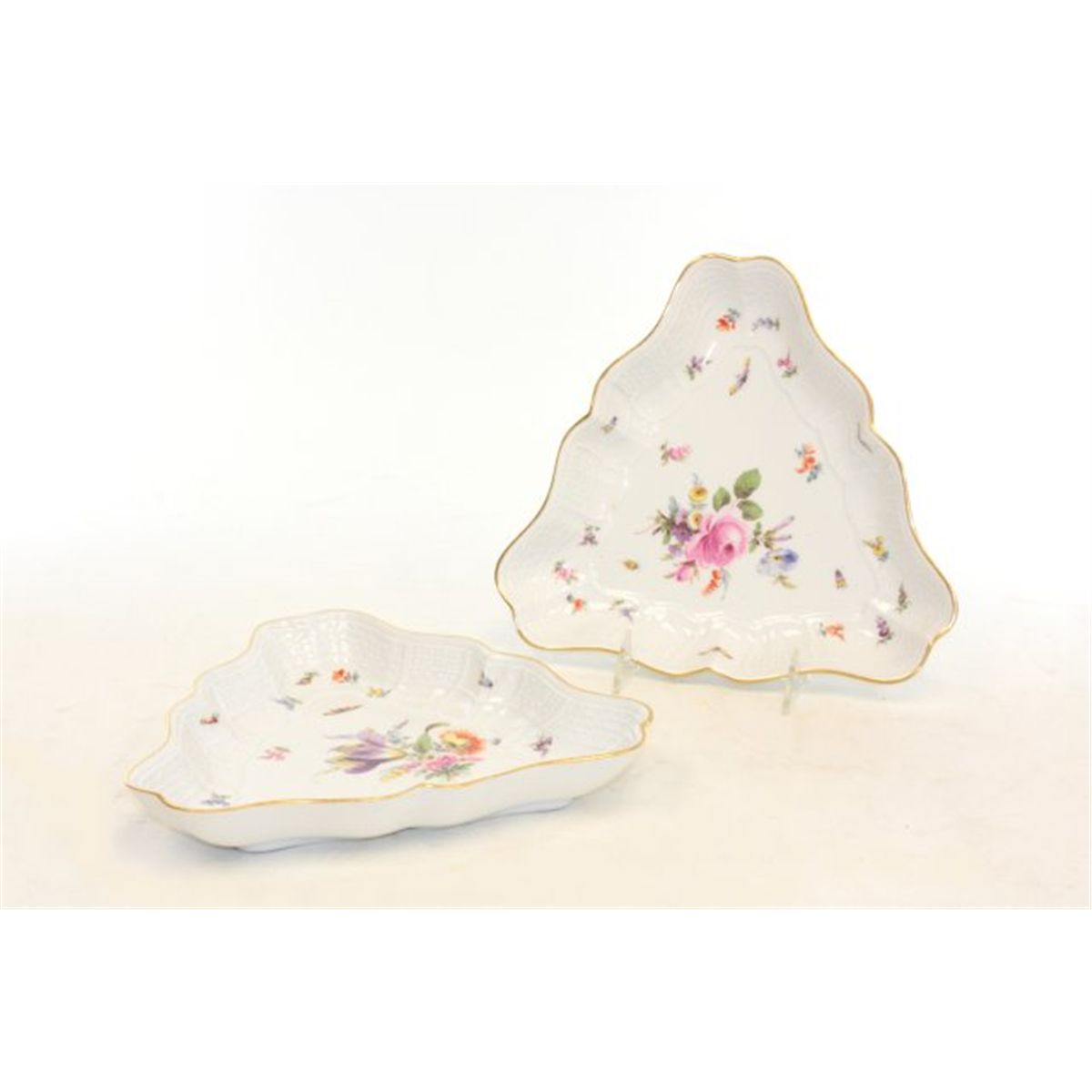 Floral decorated, 1 has a flake. Approx. 9" x 1.5". Please read our terms of sale.