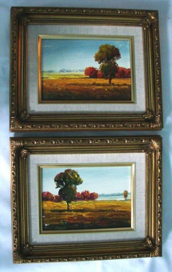 Pair 5 x 7 Oil on Board in Gold Gilt Frame ~ Abstract Landscapes