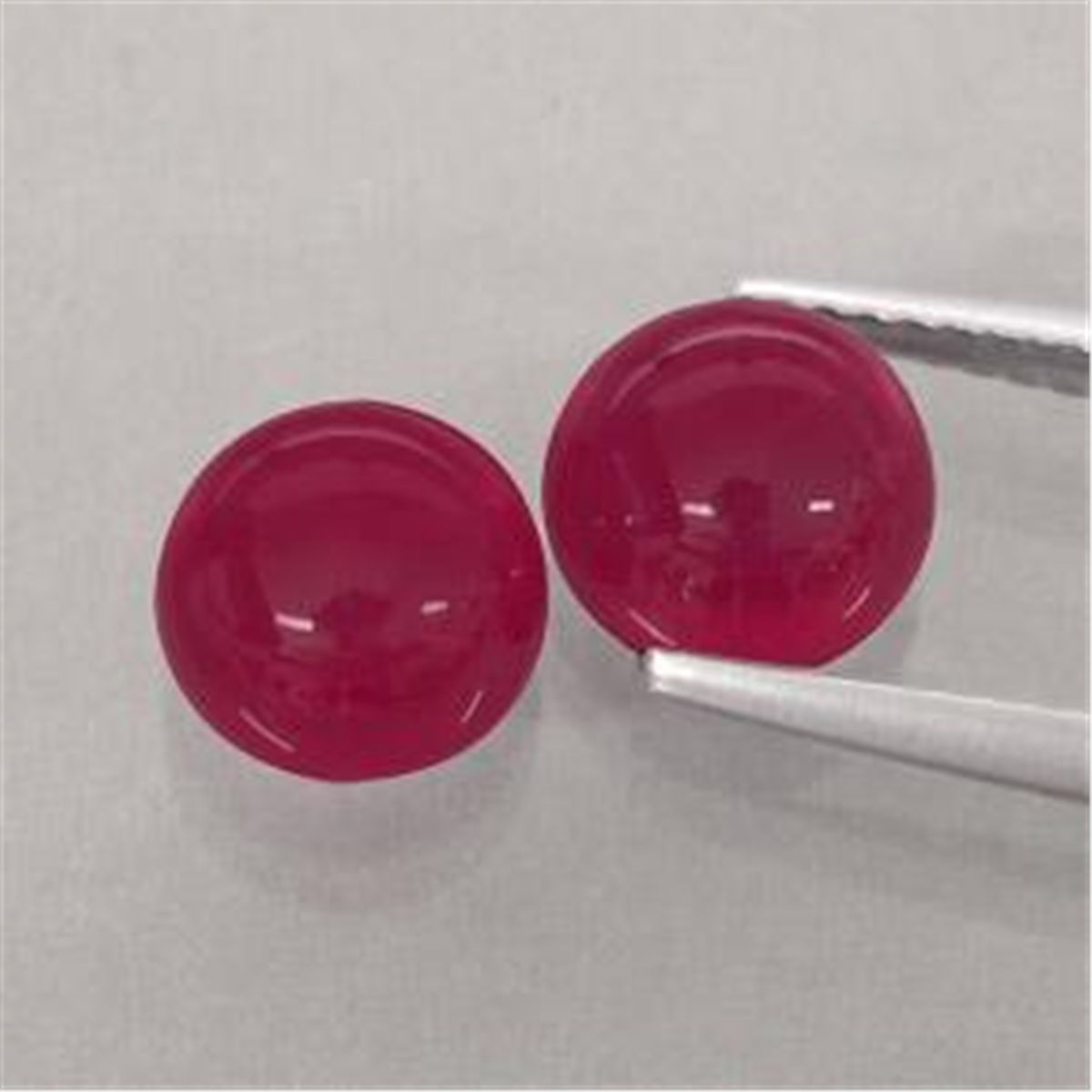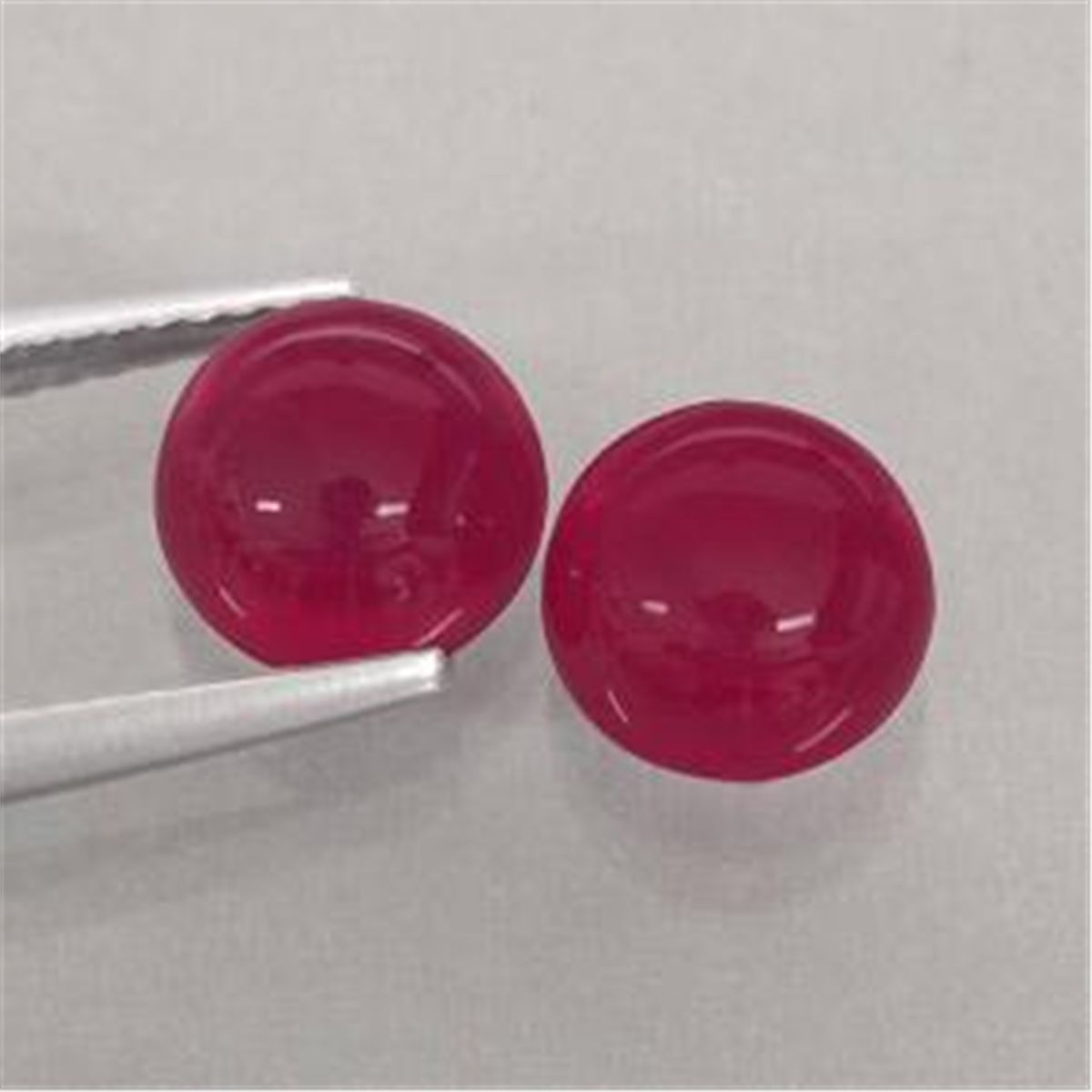 Pair 6ct Madagascar Red Ruby (2 pieces), average size 7.43 x 5.26 mm, clarity Transparent/Translucent, Round Cabochon mwf1978