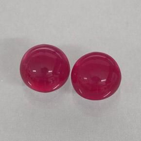 Pair 6ct Madagascar Red Ruby (2 pieces), average size 7.43 x 5.26 mm, clarity Transparent/Translucent, Round Cabochon mwf1978