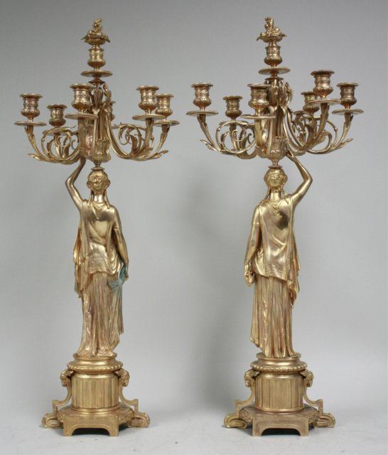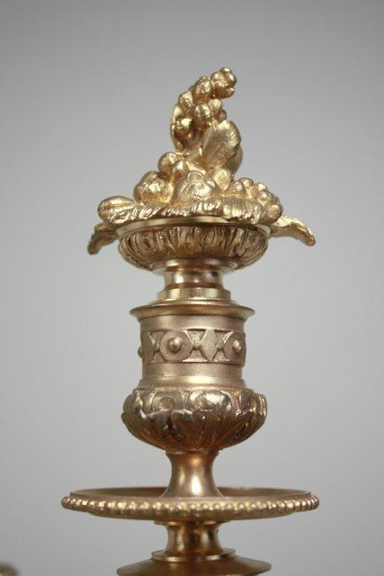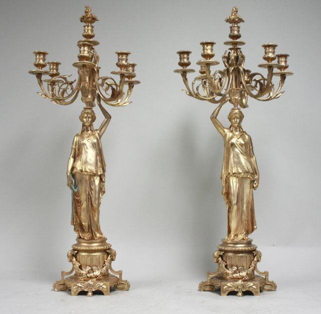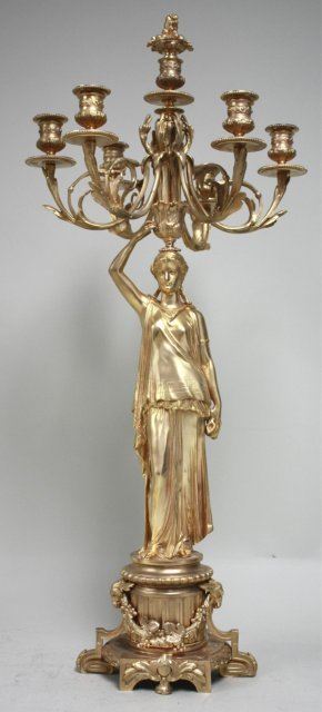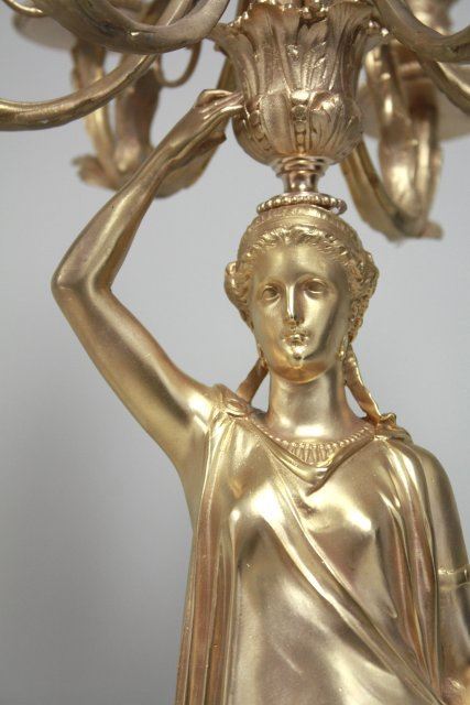Gold finish, empire style. Approx. 34" H. Good condition.