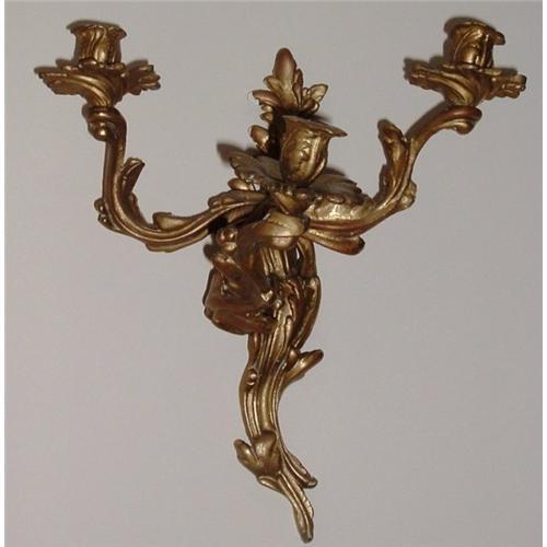 <tr><td>Title:Pair Acanthus Leaf Three-Arm Gilt Bronze Wall</td></tr>