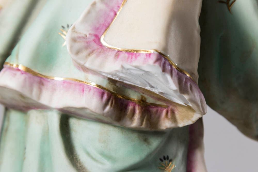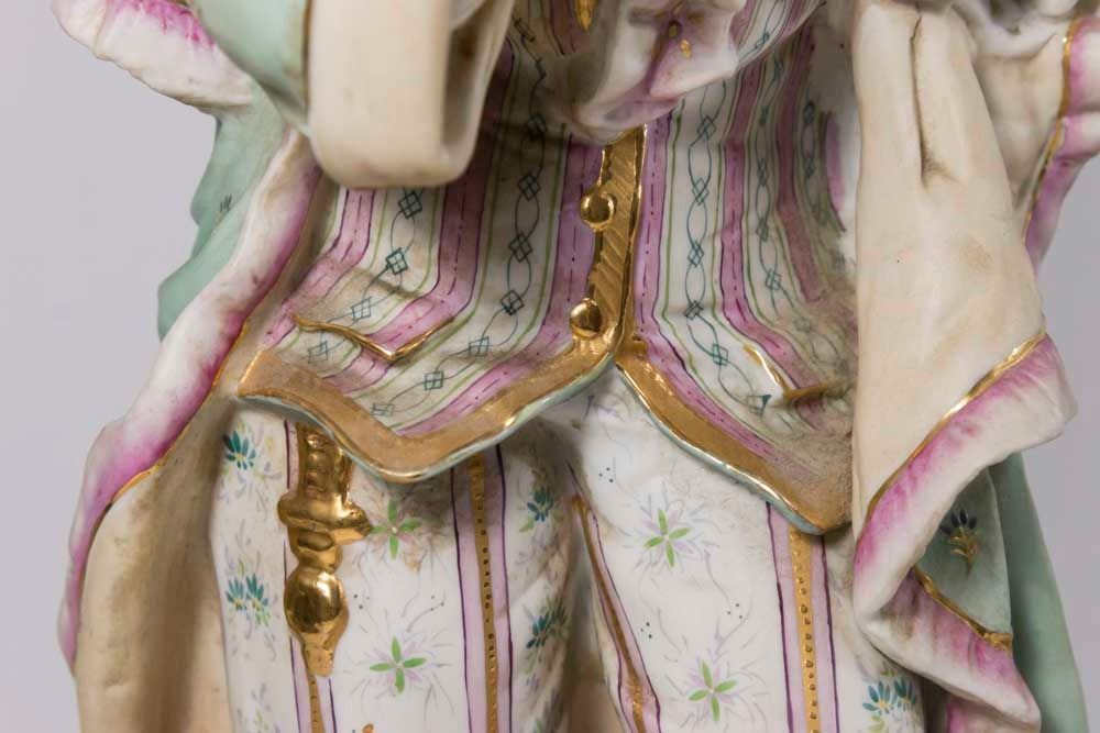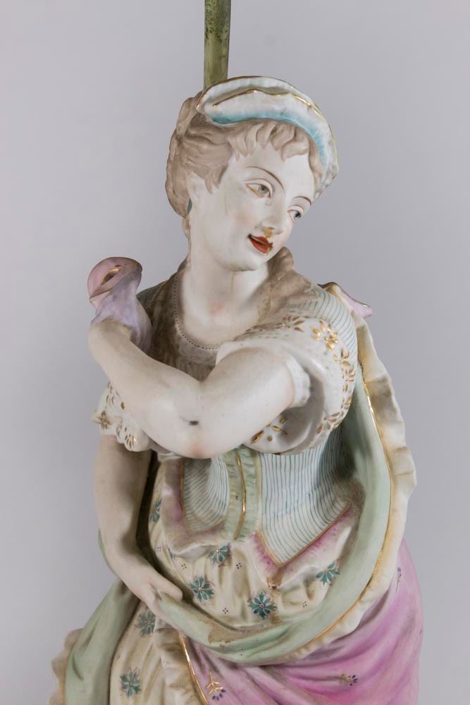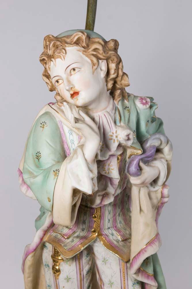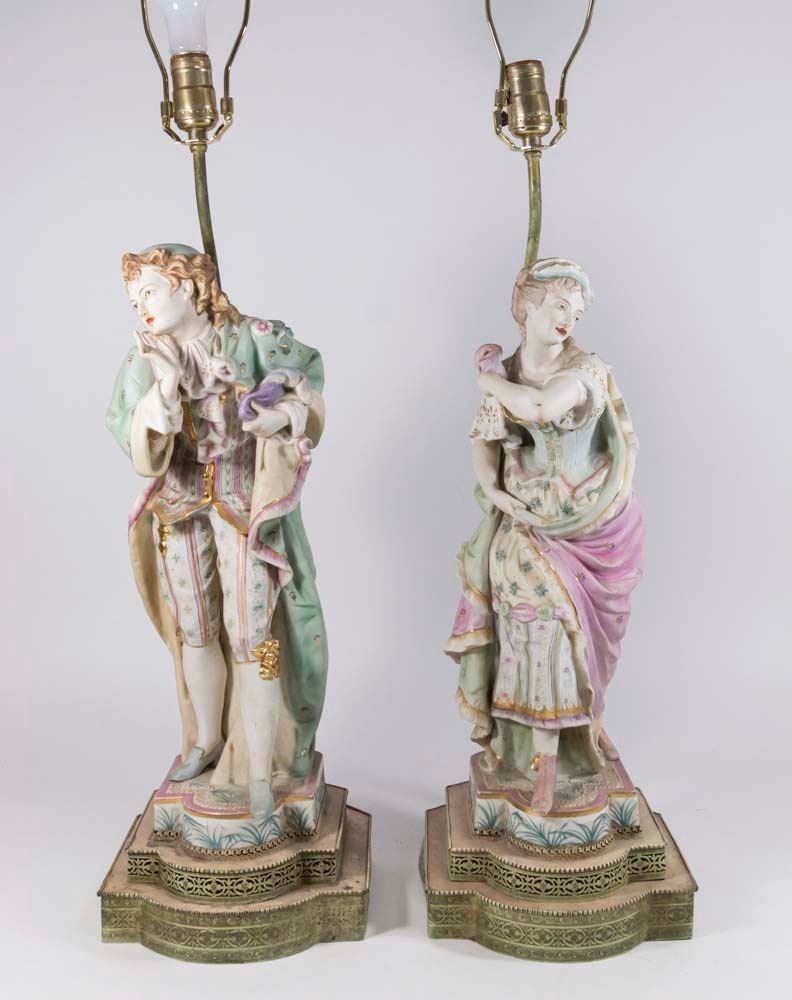 Mounted as lamps. Figures approx. 18" H. (6101) Small chip back of man's cloak.