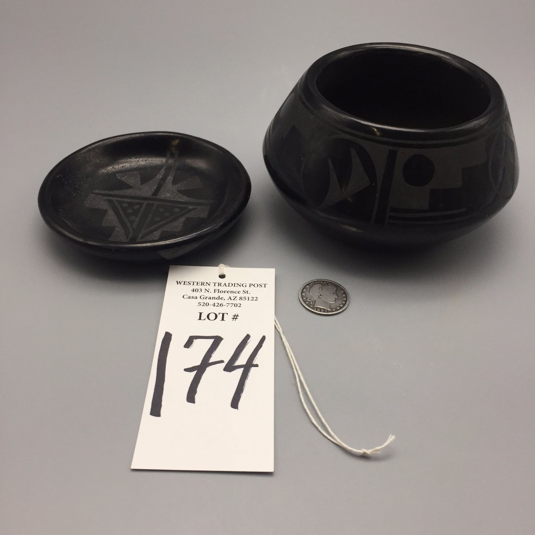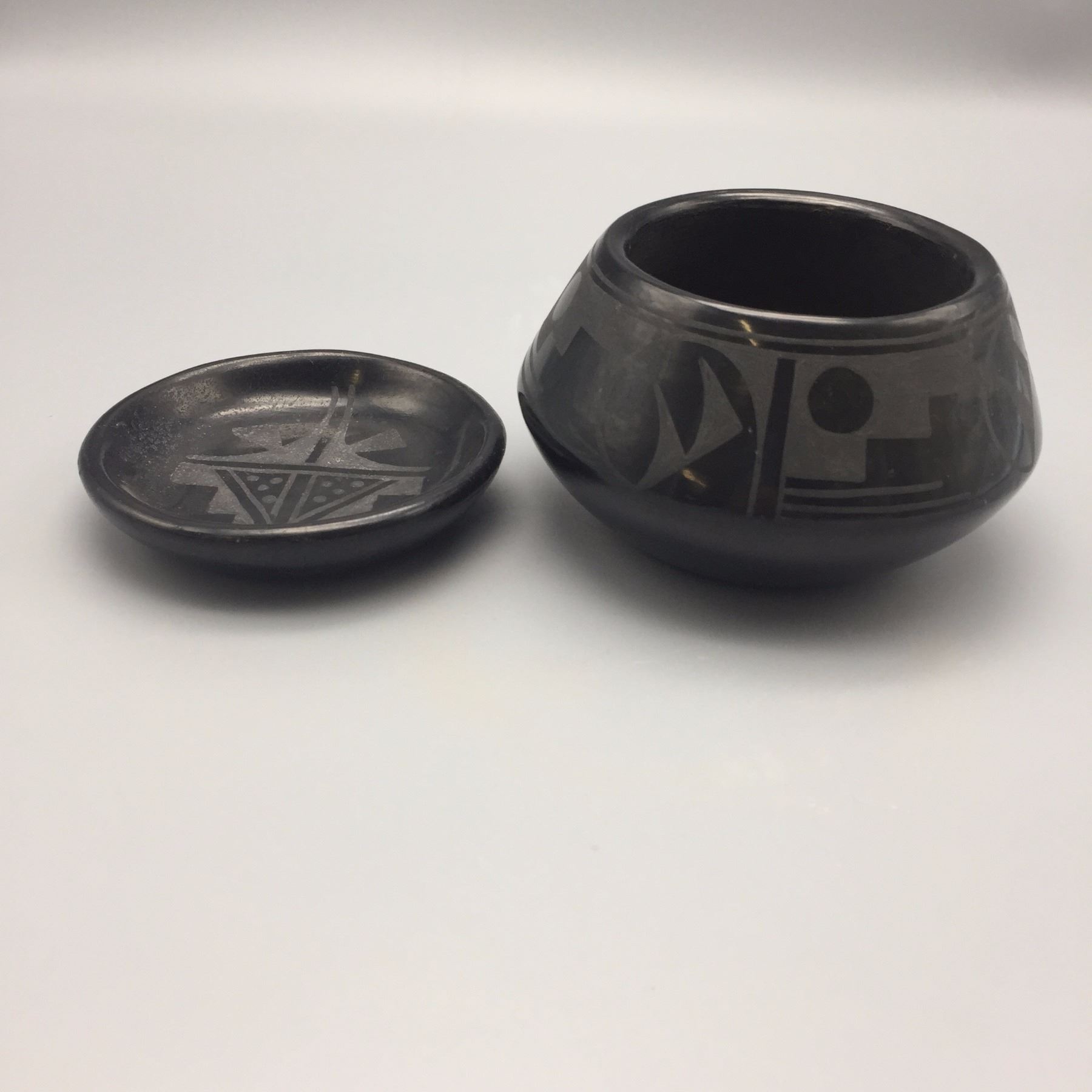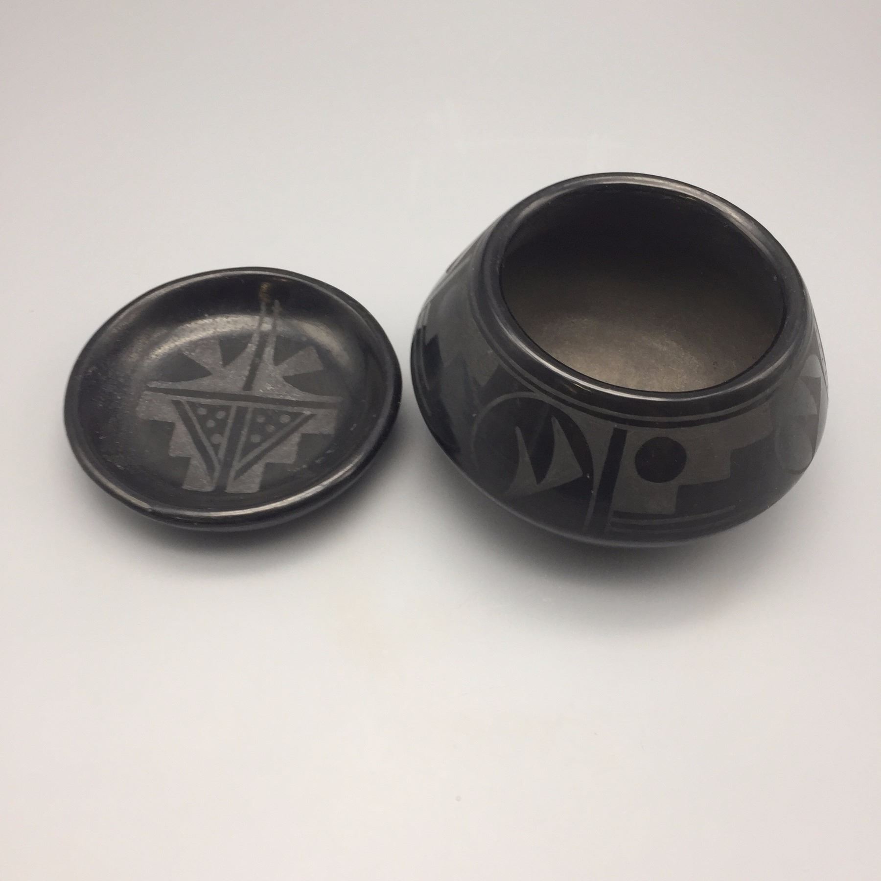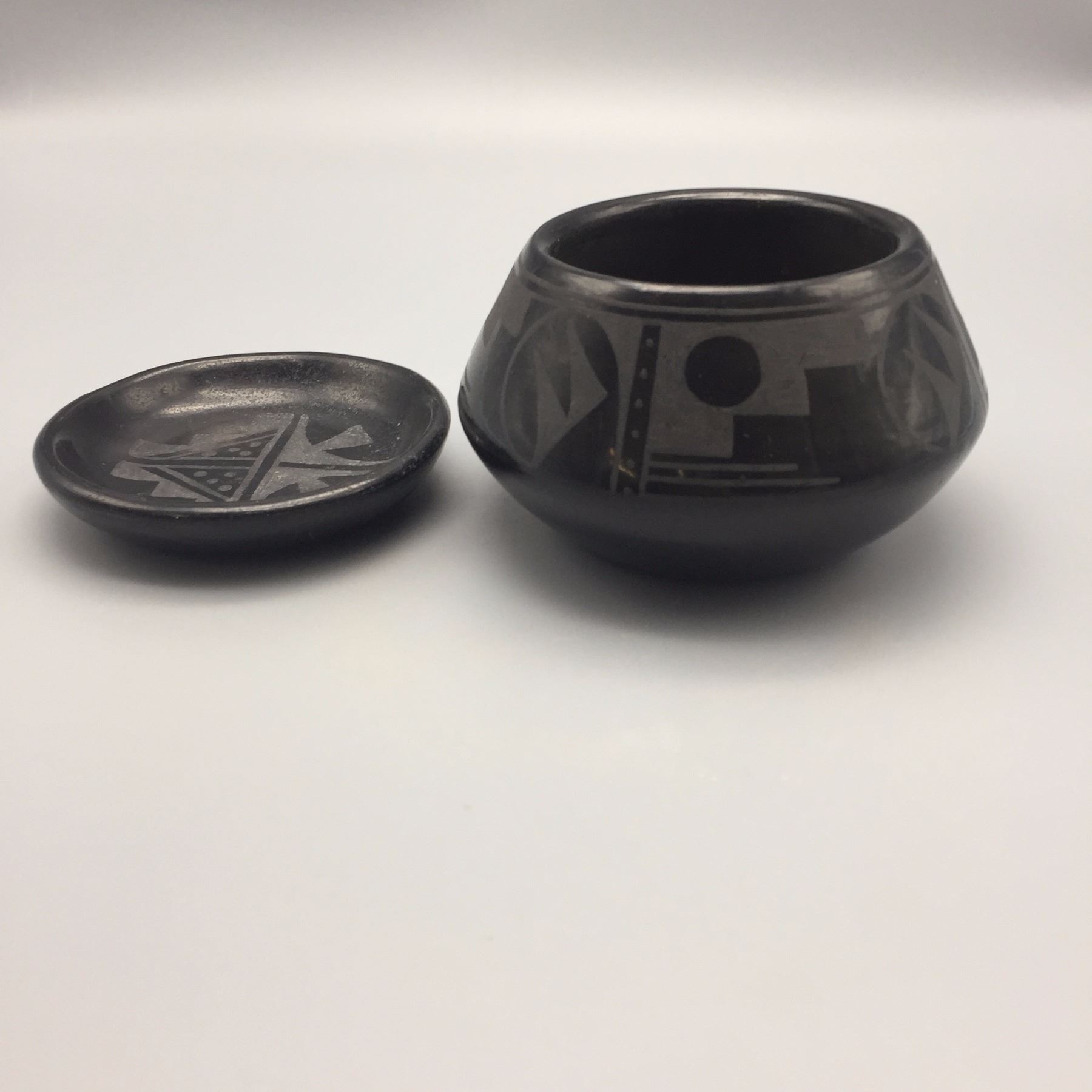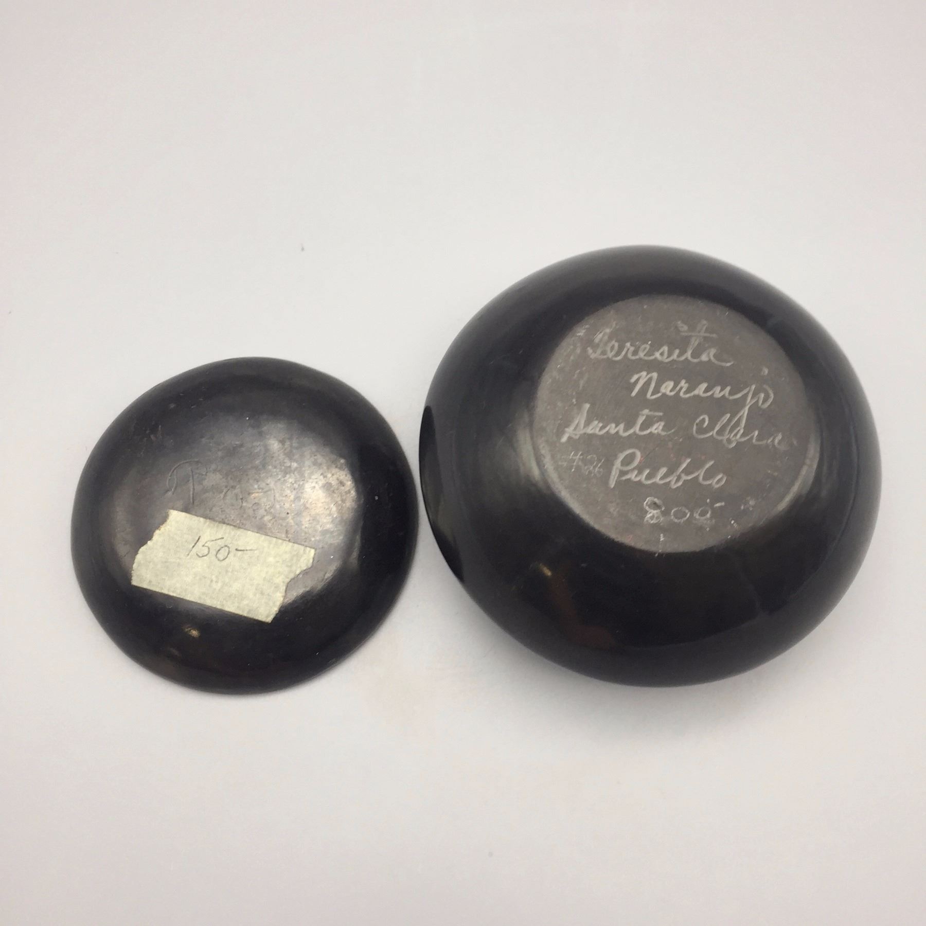 Maker: Rose Gonzales and Teresita Naranjo. Approx. Age: Vintage. Size: 1) 4 1/4” w x 1” h. 2) 4 1/2” w x 3”. Additional Info: Pair Black pots. Condition: Good for their age, normal wear expected. Please look closely at the pictures - they are an important part of our description. Shipping: There will be a $10 handling / packaging fee for shipping this lot. The actual cost of postage will be added on top of that.