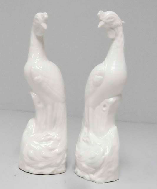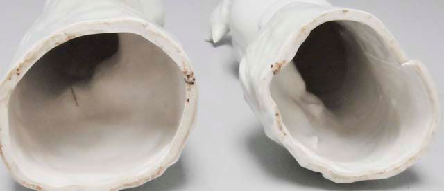 One Chinese, early, firing crack on base. The other copied later in Europe, possibly salt glaze. Approx. 12" H. Please read our terms of sale.