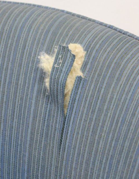 Modern. Approx. 30" H x 24" W x 23" D. Rip in upholstery of one.