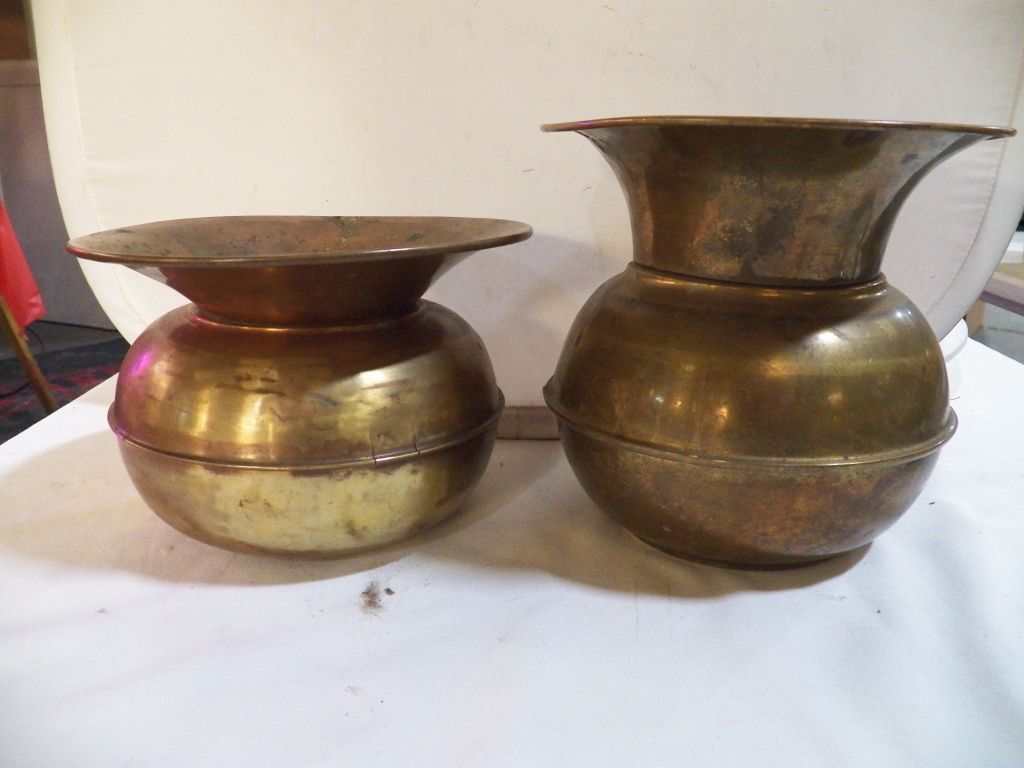 Pair Brass Spittoons 1- 7" round x H71/2"- 1- 8" round x H 5 1/2"