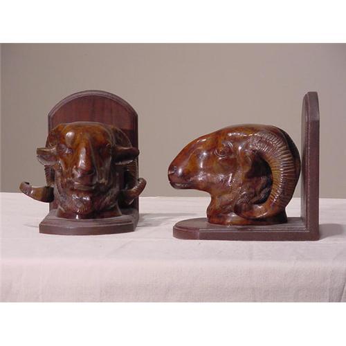 <table width="100%" border="0" cellspacing="0" cellpadding="4"><tr><td><em> </em></td></tr><tr> <td width="100%"> Pair of Carved Ram's Heads used for bookends. This are replica's. </td></tr><tr> <td> </td></tr><tr> <td>Reference #: 218</td></tr><tr><td>Condition:excellent</td></tr><tr><td>Year:20th century</td></tr><tr><td>Height:8</td></tr><tr><td>Width:8</td></tr><tr><td>Title:Pair Carved Ram's Head bookends-replicas</td></tr><tr><td>Materials:wood</td></tr><tr><td>Location:Atlanta, GA</td></tr></table>