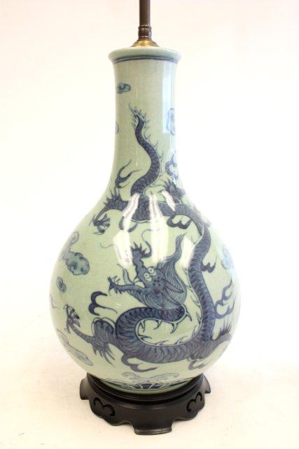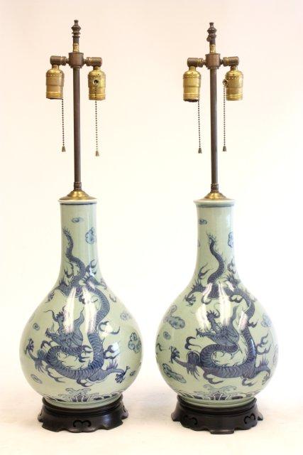 Pair Celadon vases of "Blue Dragons"