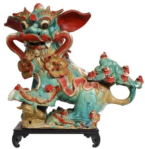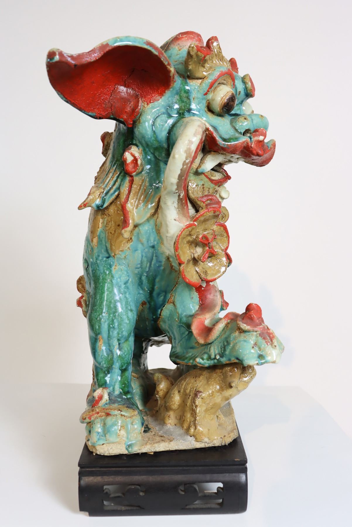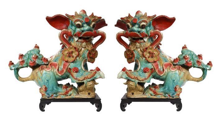 Pair of Chinese Foo Dog with Base. One foo dog has a small chip on the tail.