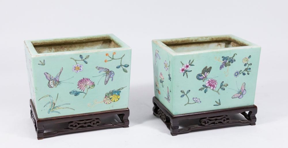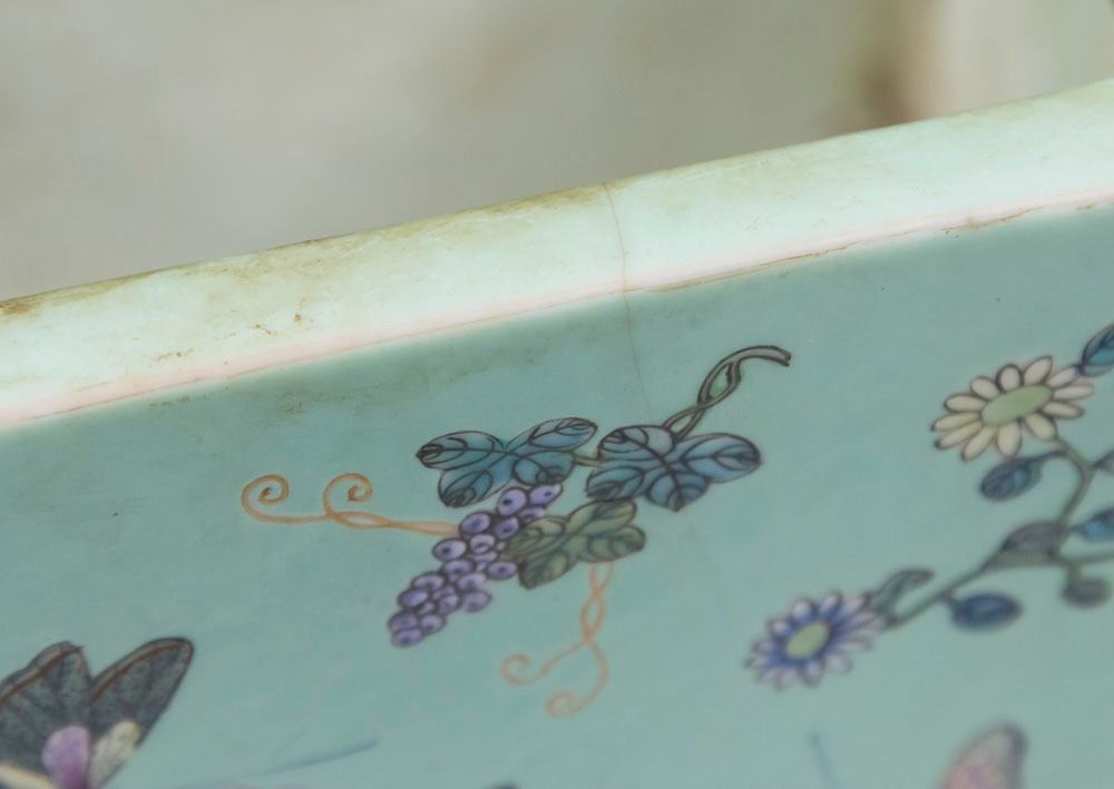 Marked on bottom. Floral and butterfly design. Approx. 4 3/4" H x 7" x 4 1/2".