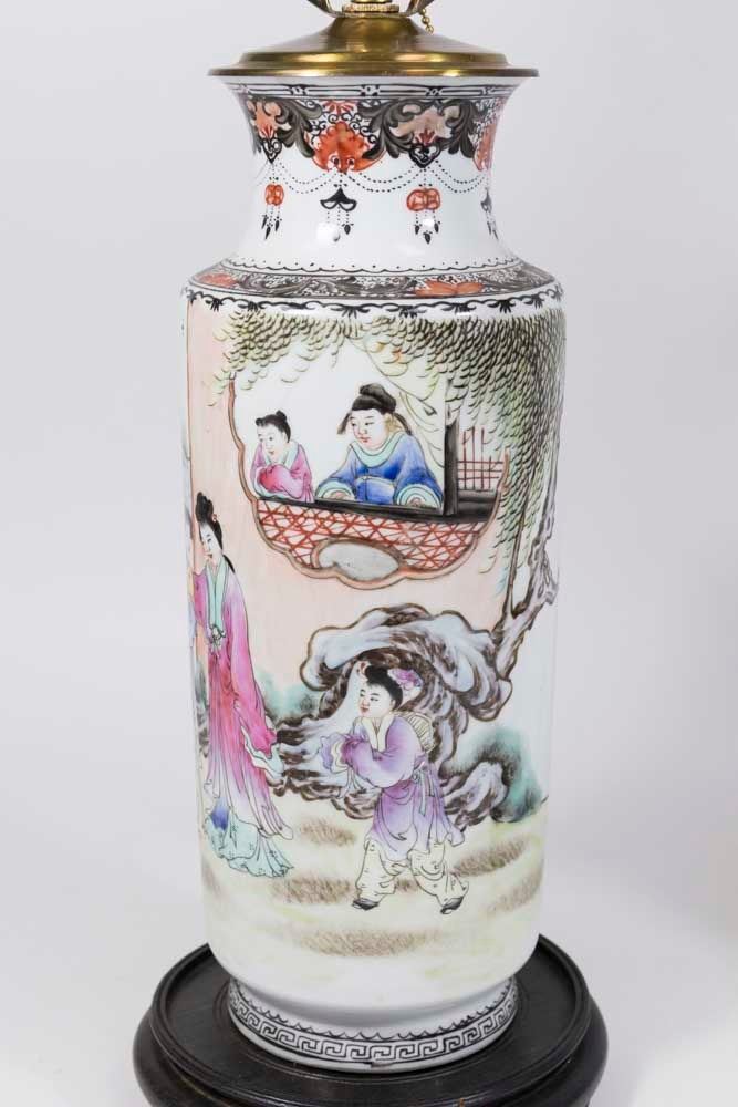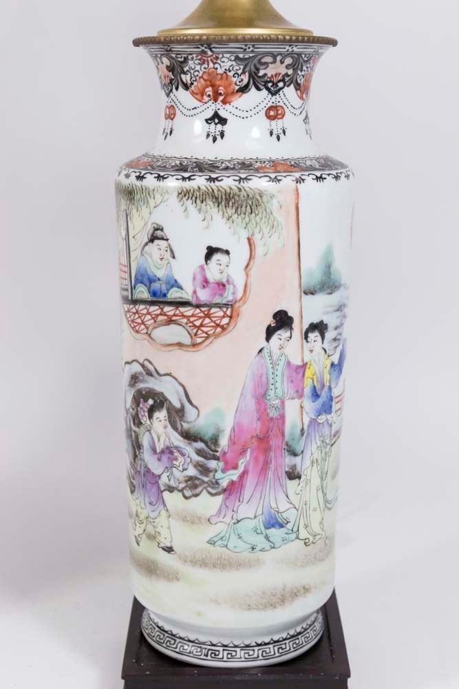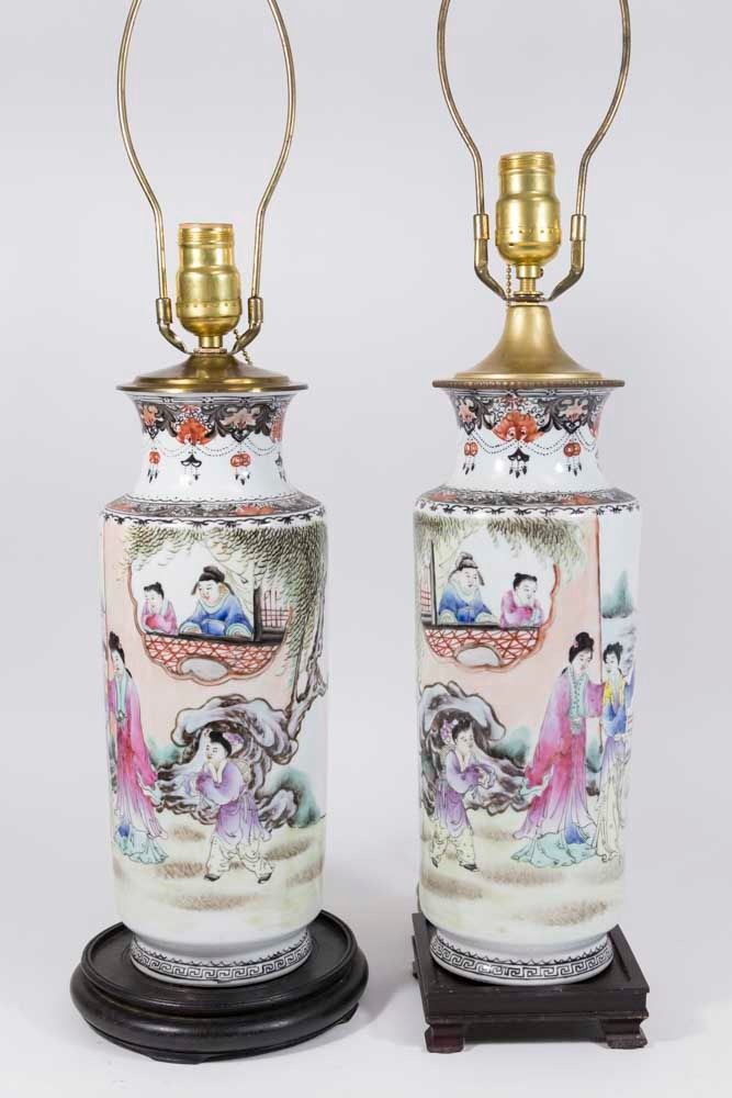 Mounted as lamps. Vases approx. 13 1/2" H. 2 different wood bases.