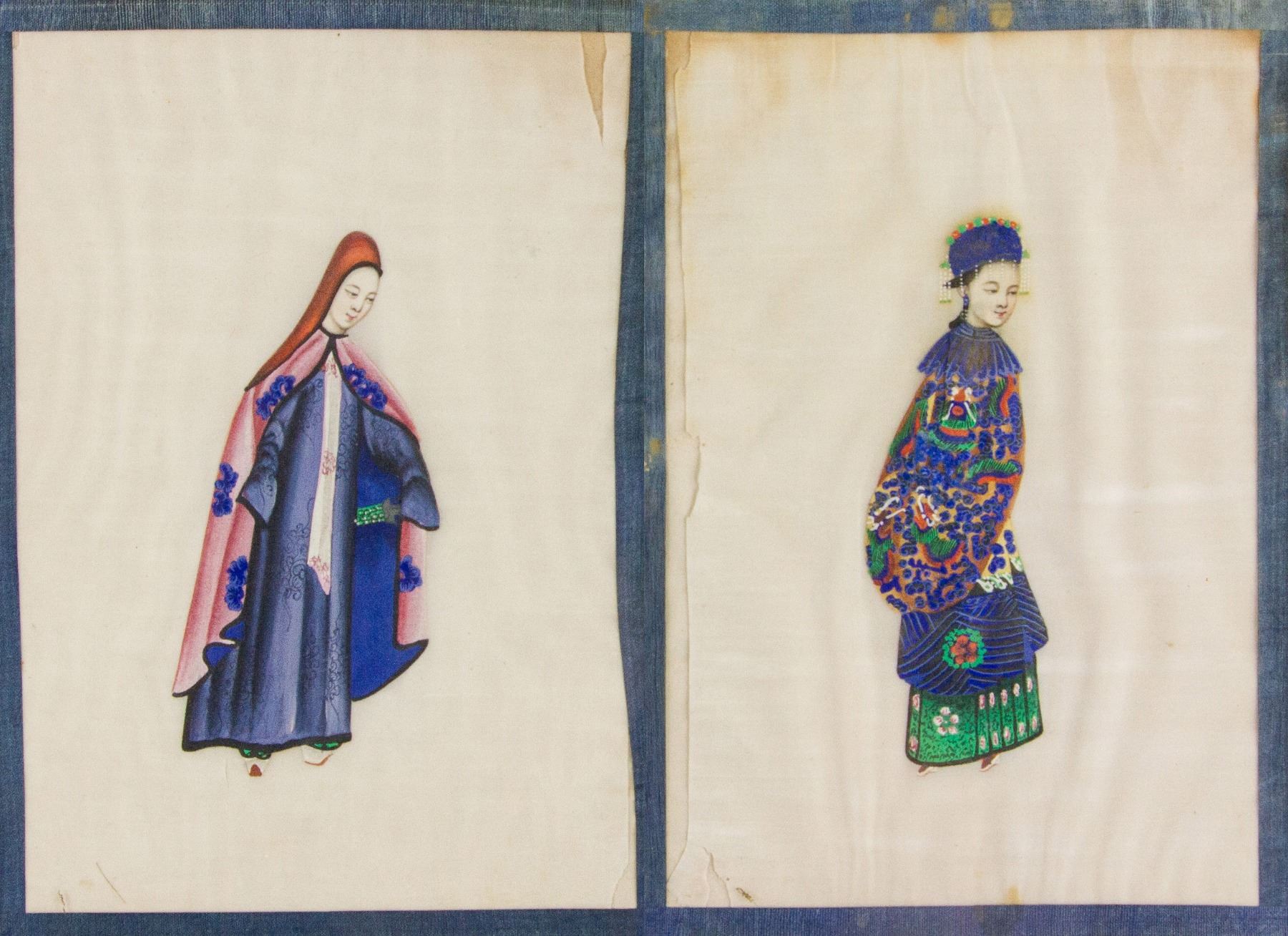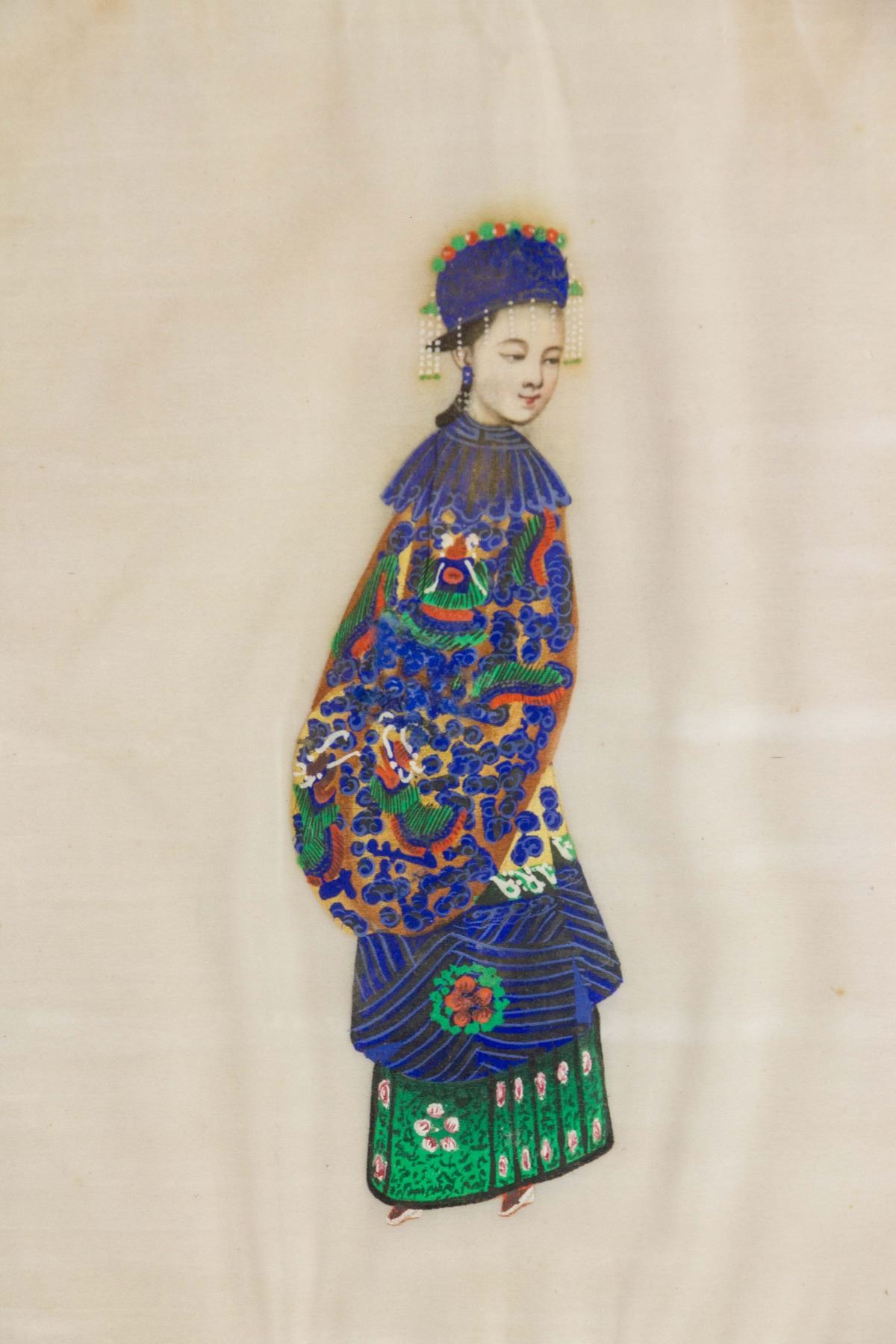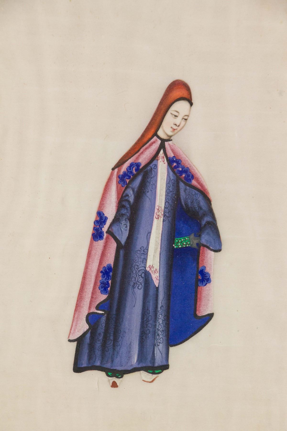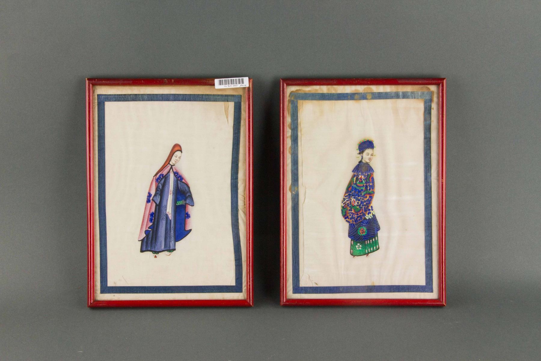Ink and watercolour on paper; framed. Featuring two ladies adorned in ethnic clothing; 24.5 x 17 cm (each)
