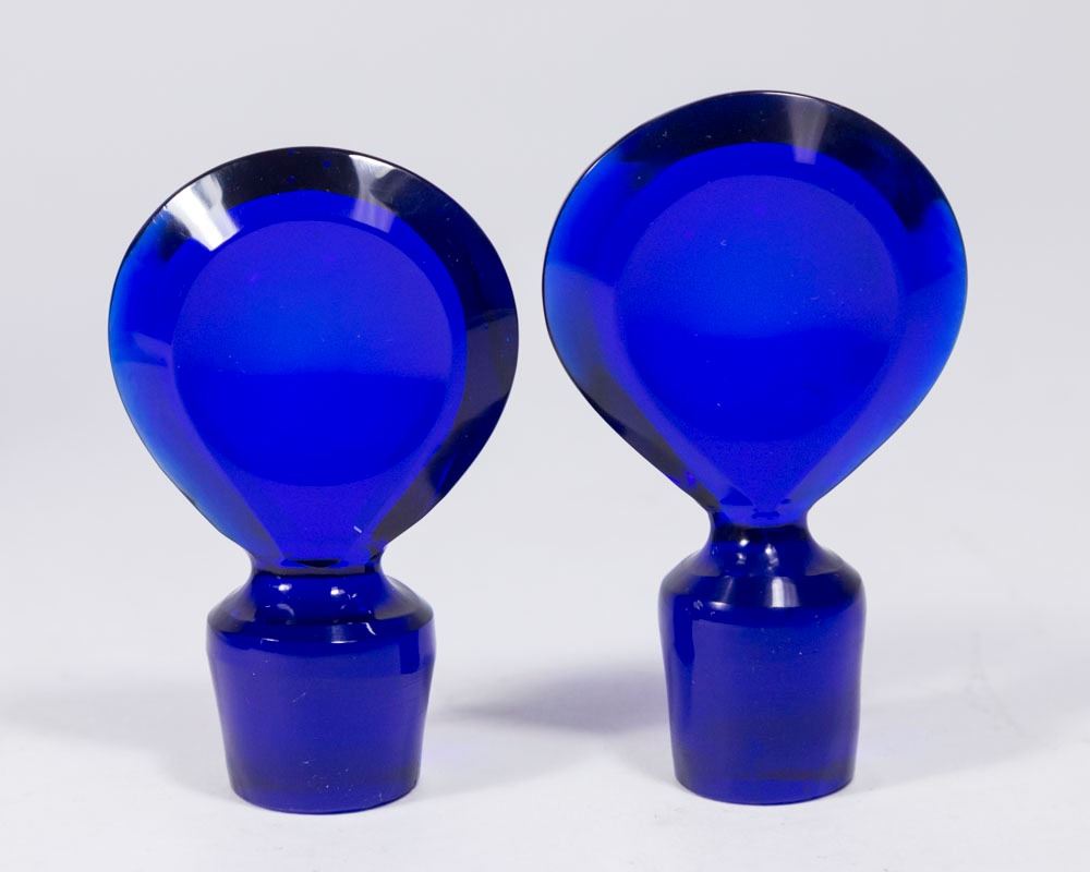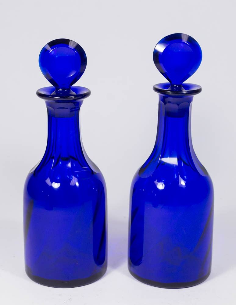 With stoppers. Approx. 11" H. Pontil on bottom.