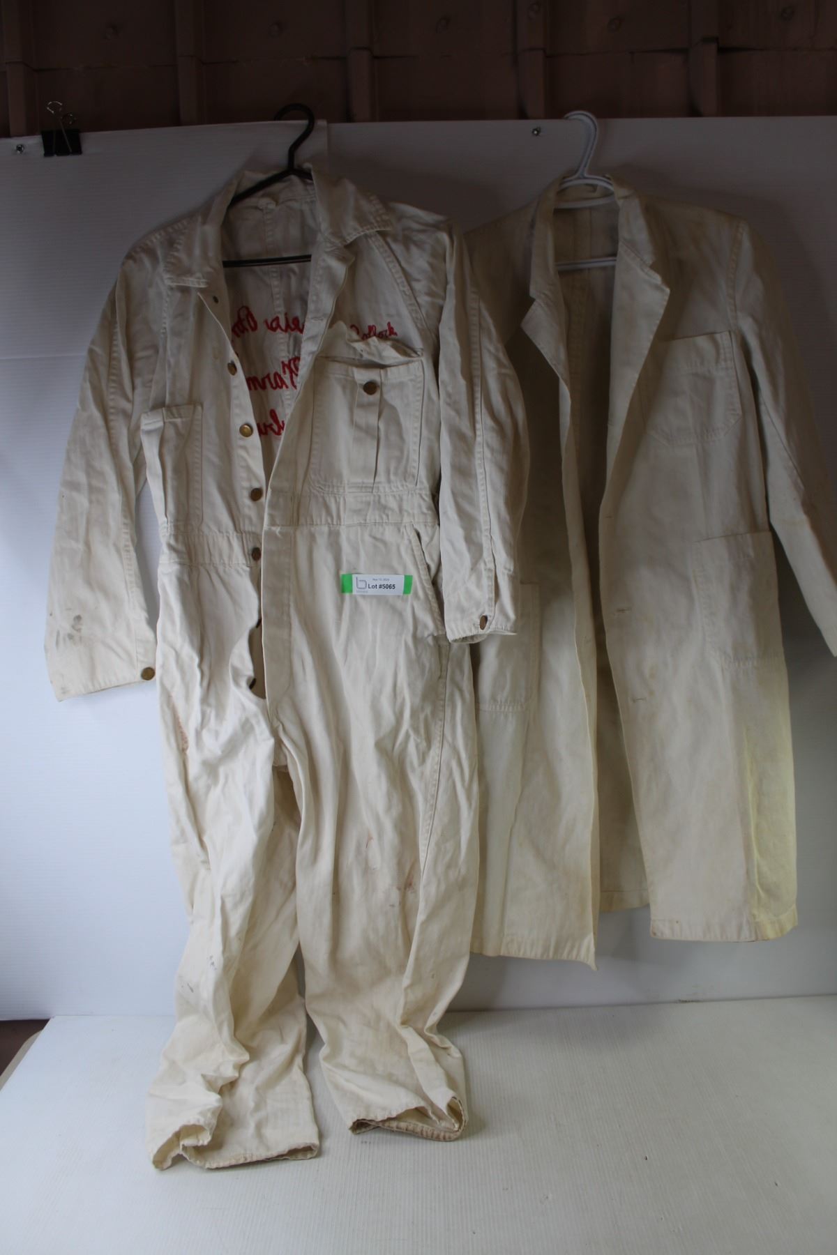 Pair Cover-Alls "Dreis Pony Farm Weyburn" 54" Length Approx - Small/Medium Fit - "Cliff Pollock", Lab Coat - Small/Medium Fit
