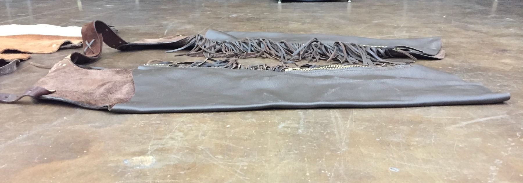 Description: Presented for sale in this lot is a pair of Cowboy Chaps and a pair of Leggins. Both items are made from dark brown leather. The leggins have brass buttons and accents. The chaps have conchos with brass and leather accents. Maker: Unknown. Approx. Age: Vintage to modern. Size: Leggin 18”w x 23” long. Chaps 18”w x 37” long. Condition: Good for their age, normal wear expected. Please look closely at the pictures - they are an important part of our description. Shipping: There will be a $8 handling / packaging fee for shipping this lot. The actual cost of postage will be added on top of that.