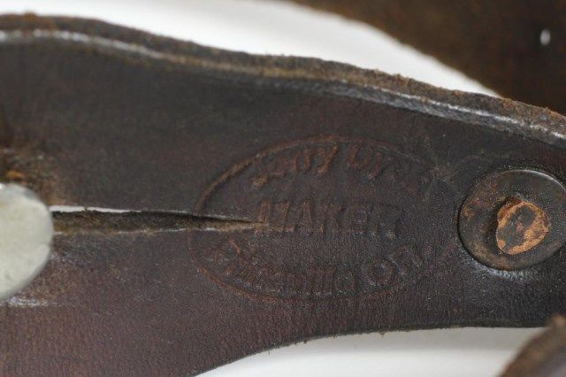 with 2" rowels, marked below buttons on inner heel bands, includes Jerry Dyck Prineville, Oregon leather straps. Est. 1500-2500