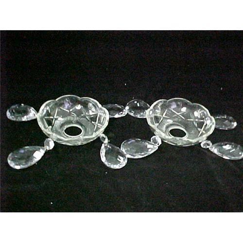 Pair Crystal & Prism Candle Rings. We believe these to be Cambridge, but can not find marks. The diameter of each is 4" and each of the 4 prisms on each ring is about 3" long. Identical. Very lovely quality.