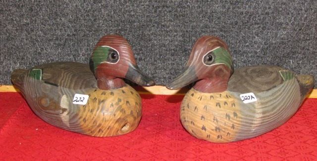Pair of Handmade 10" Duck Decoy with glass eyes - signed SCM