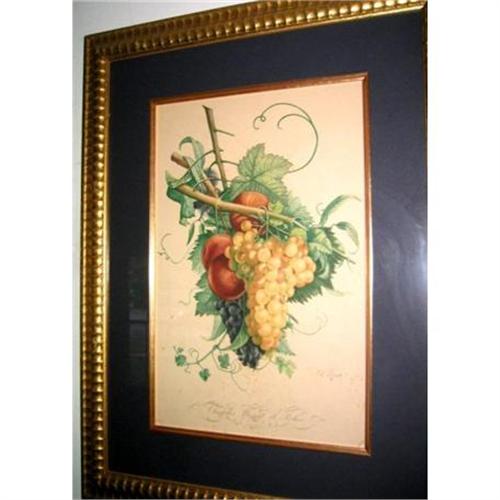The Print with the peachs has some water damaged at the left bottom side